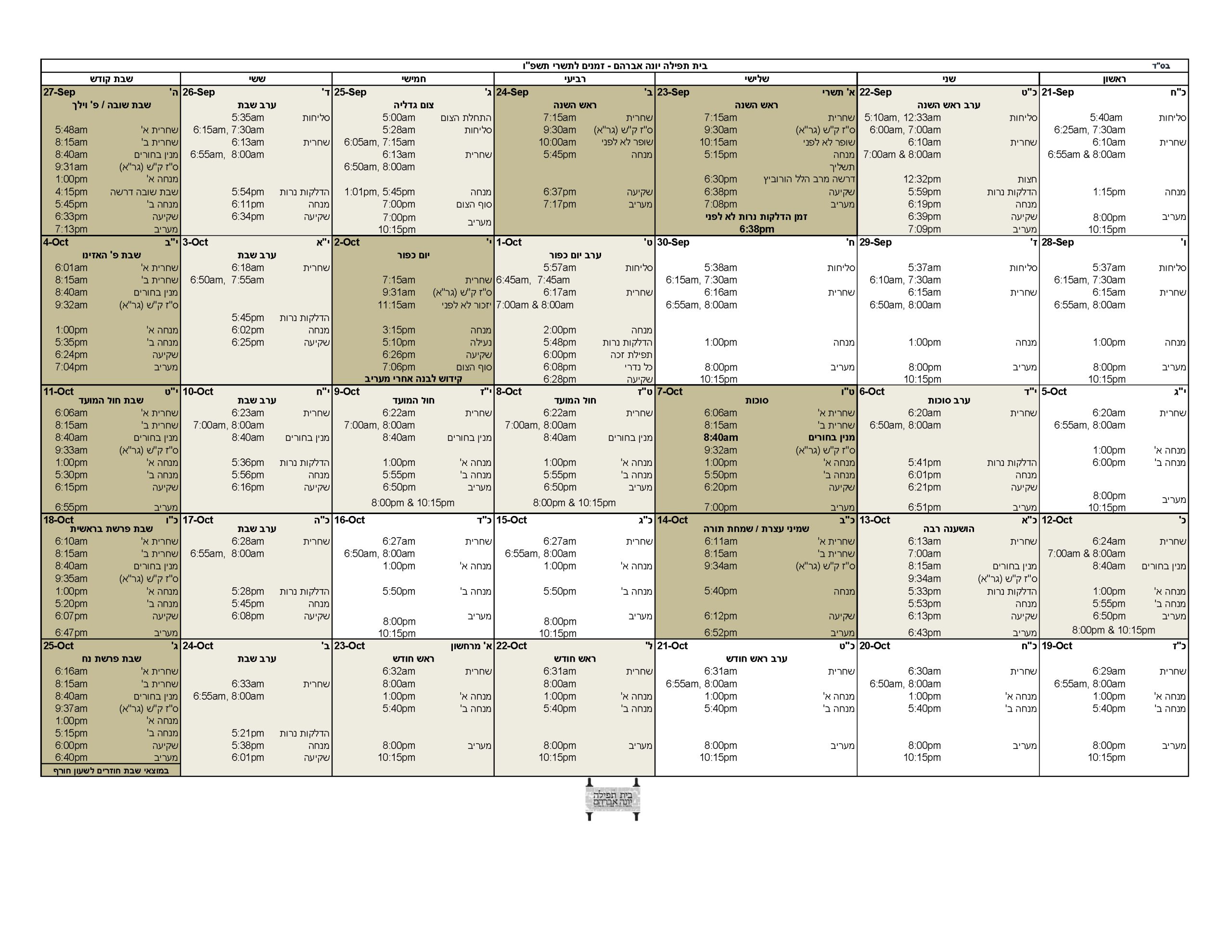 Beis Tefillah Yonah Avraham was founded in 5760 (2000) to meet the needs of new olim looking for a community with which to provide support and a sense of belonging.